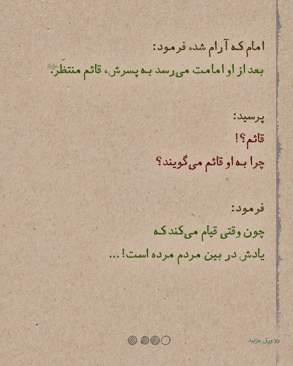چون وقتی قیام میکند که یادش در بین مردم مرده است!…